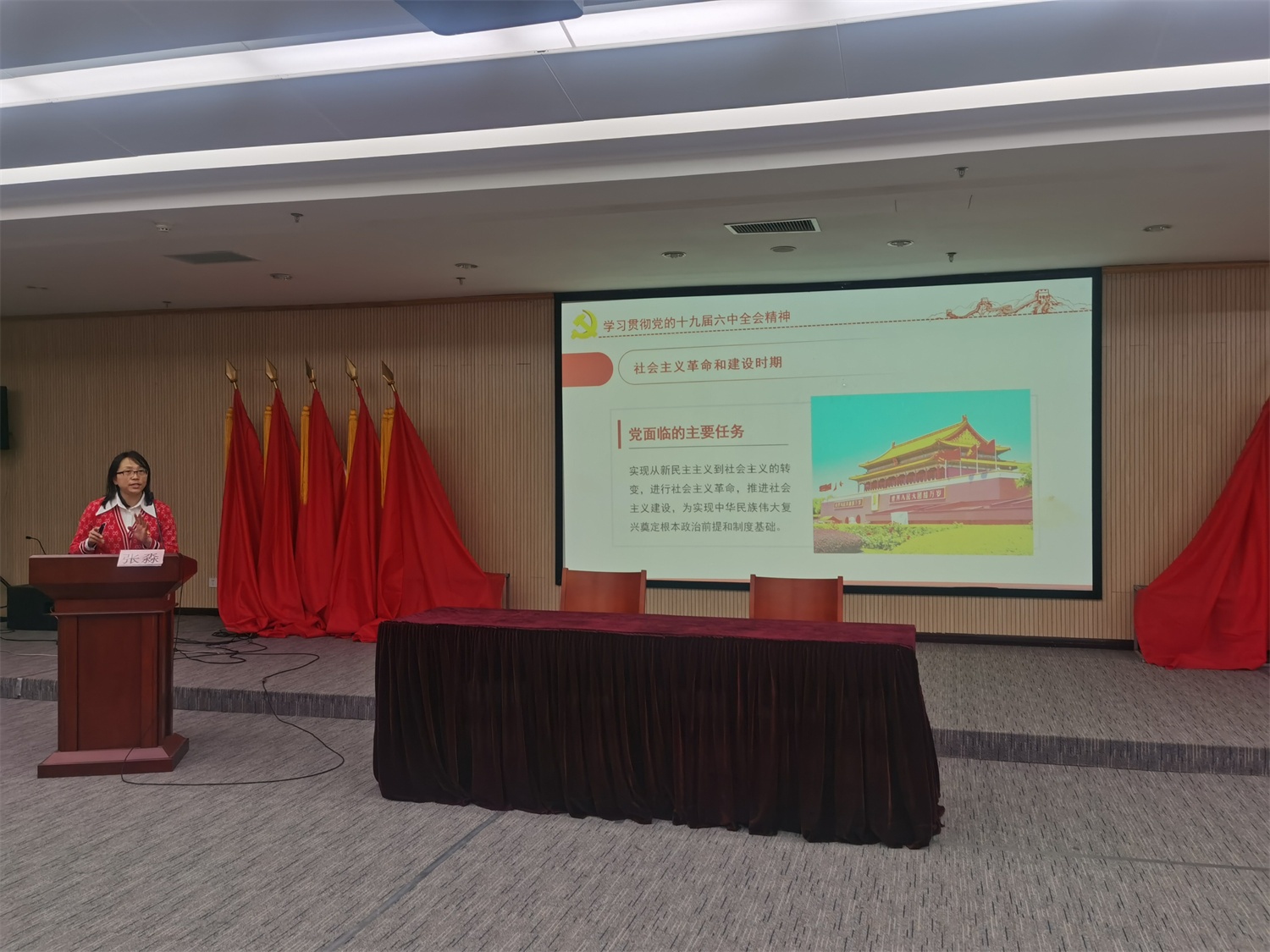 宣讲会上,张淼同志围绕十九届六中全会召开的概况,以全会审议通过的《中共中央关于党的百年奋斗重大成就和历史经验的决议》为切入点,以“两个确立”为核心,以深刻认识“三次理论飞跃”为贯穿,从坚持党的全面领导,为实现第二个百年奋斗目标新征程等方面,全面系统、深入浅出地对全会精神作了全方位的讲解和阐释。