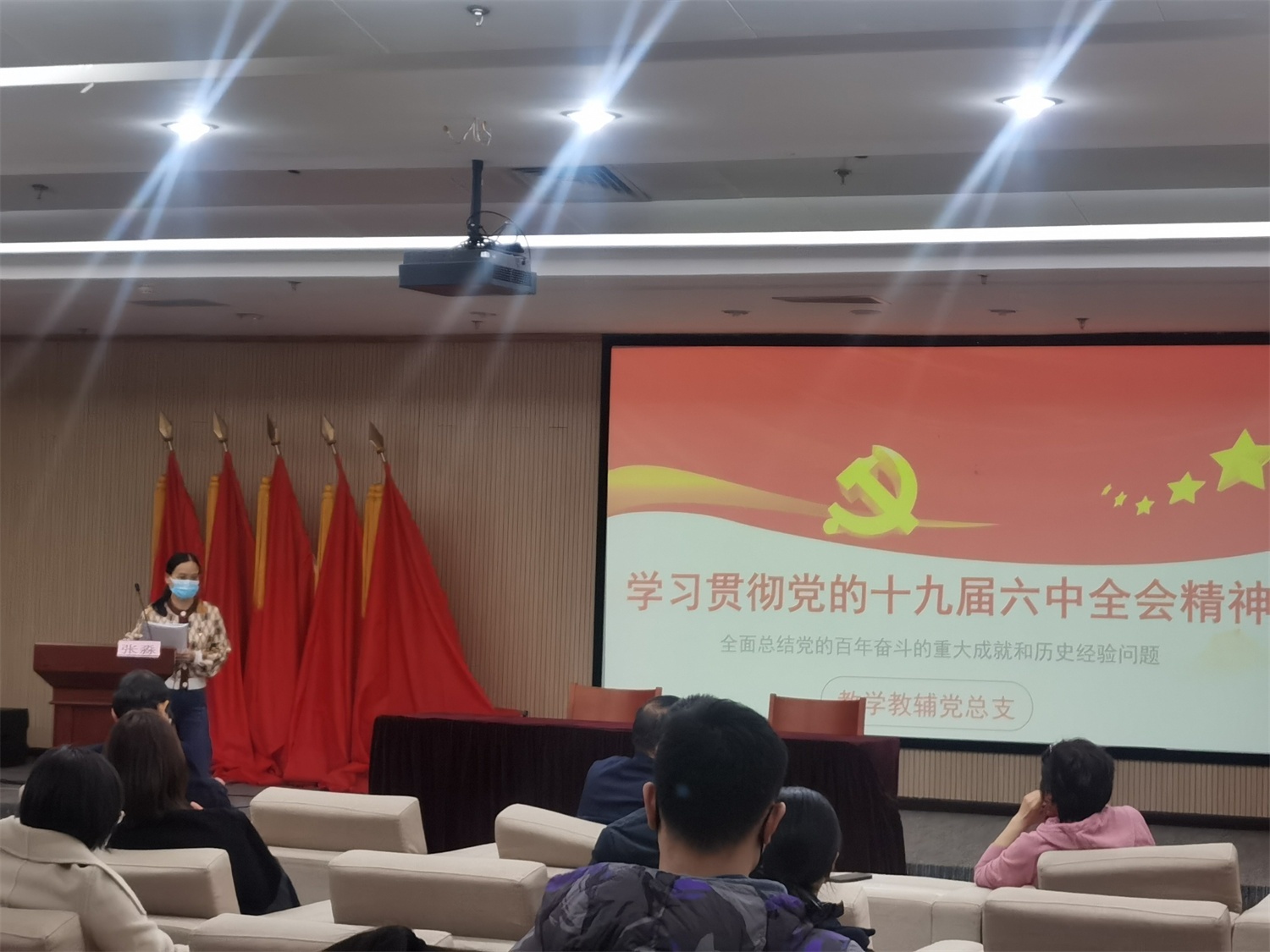12月1日下午,教学教辅党总支学习贯彻党的十九届六中全会精神主题宣讲报告会在图书馆四层视听室举办。教学教辅党总支书记张淼同志作宣讲报告。公共教育学部党支部、马克思主义理论教学部党支部、培训中心党支部、信息中心党支部、图书馆党支部全体党员干部参加了报告会。
