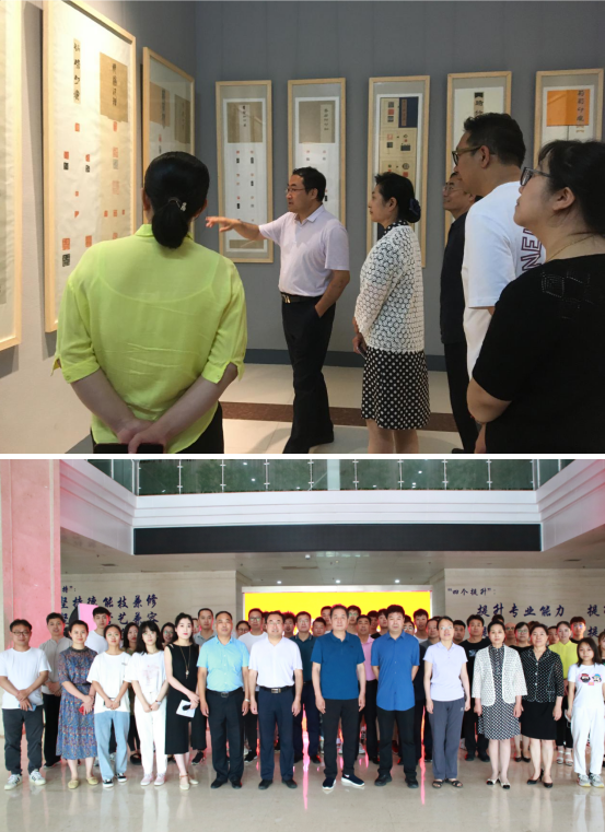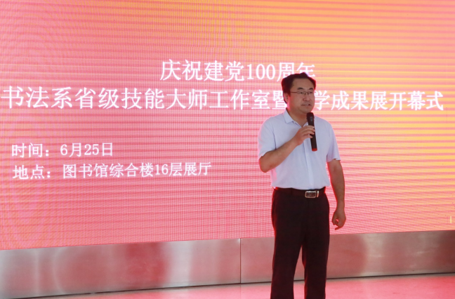 6月25日上午,河北省高等职业教育创新发展行动计划、省级技术技能大师工作室师生教学成果展在图书馆一楼如期开幕。学院党委书记薛树林同志,党委副书记、院长孙东辉同志,学院党委委员、副院长林姿峰同志,党委委员、党政办主任唐励铭同志,原金年会app手机版在线登录学院书法系主任、现廊坊市文联主席张志庆先生,部分系部、处室领导和教职工代表,共计40余人参加开幕式。