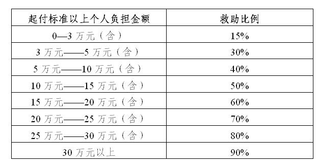 1. 第一条提出的2000、5000、10000元,为医疗救助起付线,医保经办机构将对起付线以上的个人负担部分按比例给予救助。