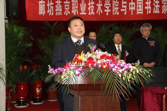 中国书法家协会分党组书记赵长青在会上对两家的合作办学签约仪式的如期举行表示诚挚的祝贺,他表示通过合作办学这个平台,金年会app手机版在线登录与中国书法家协会共同为大力发展职业教育,普及中华书法艺术,培养更多的书法教育工作者做出应有的贡献,是中国书法协会的一大喜事,也是书法界一大喜事。最后,他祝双方合作办学签约仪式圆满成功,共同推进高职院校书法教育的蓬勃发展。