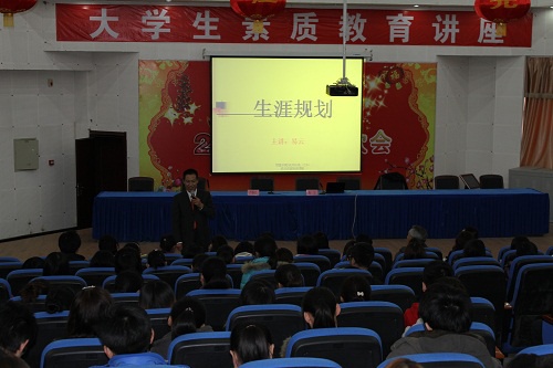 在报告会上,针对大一新生对大学生活迷茫的特殊时期,易云教授结合许多成功人士的经历,着重从如何学习、如何与人相处、如何确立人生目标等几个方面进行了分析并提出许多忠告。他先从生涯规划需解决的问题展开分析,指出大学生的生涯规划不仅关系到一个人是否能在社会环境中找到自己的正确位置,充分发挥自己的才能,也是大学生迈向社会、实现自己人生抱负的关键一步。他强调生涯规划最重要的是既要全面客观地自我剖析和定位,了解自己的价值观、兴趣、爱好、特长、智商、情商、以及协调、组织管理能力,又要考虑社会和市场的要求,随时掌握最新的信息。