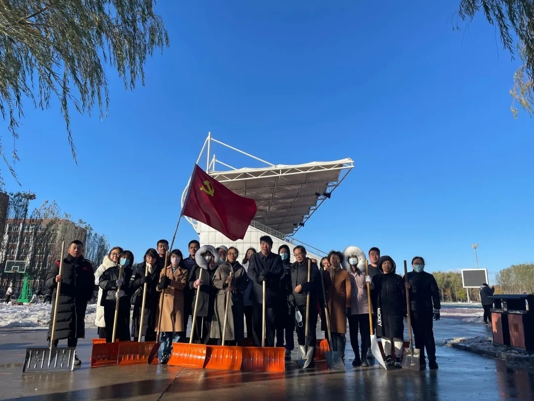 活动中,学院领导班子成员不惧严寒,率先垂范,拿起铁锹、雪铲等工具,带领广大教职工一起并肩努力。大家分工明确,默契合作,认真清扫校园内各主干道上和体育场上的积雪。天气虽然寒冷,但是大家劳动的热火朝天,忙碌的身影在皑皑白雪中形成一道道亮丽的风景线,经过两个多小时的齐心努力,终于将道路上积雪一扫而净,为师生开辟了一条洋溢着温情安全、畅通之路。