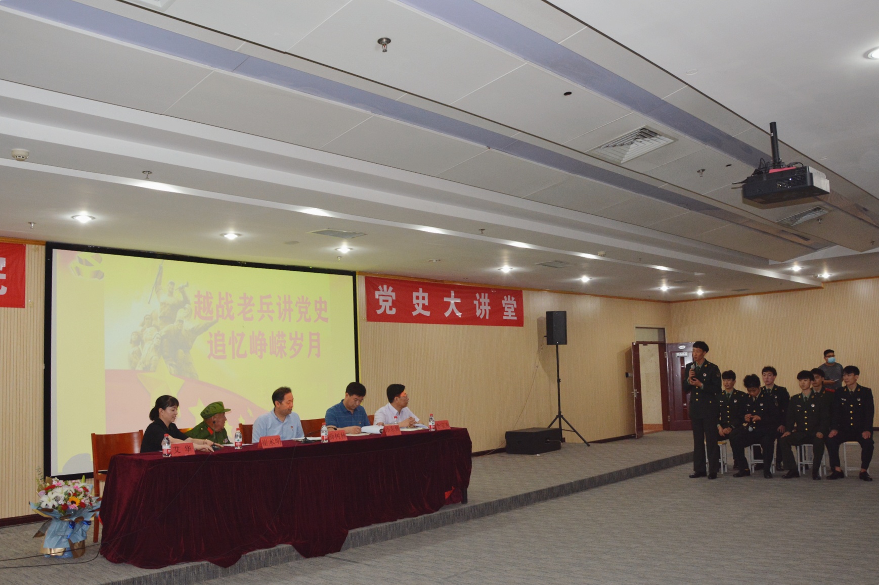 为深入贯彻落实学院党委“三四五”总体思路,扎实推进政校企一体,推动党建共建联建向实处发展,按照学院党委党史学习教育安排部署,计算机工程系党总支于6月9日在图书馆综合楼四层视听室举办了“越战老兵讲党史 追忆峥嵘岁月”专题讲座。学院党委书记薛树林同志,学院党委副书记、院长孙东辉同志,学院党委委员、组织宣传处处长李宝东同志,计算机工程系党总支书记刘春刚同志,马克思主义理论教学部副主任张淼同志,李旗庄镇退役军人服务站站长潘玉杰同志出席。组织宣传处、马克思主义理论教学部、计算机工程系全体教师,学生骨干及入党积极分子170余人现场聆听讲座。讲座由计算机工程系副主任艾华同志主持。