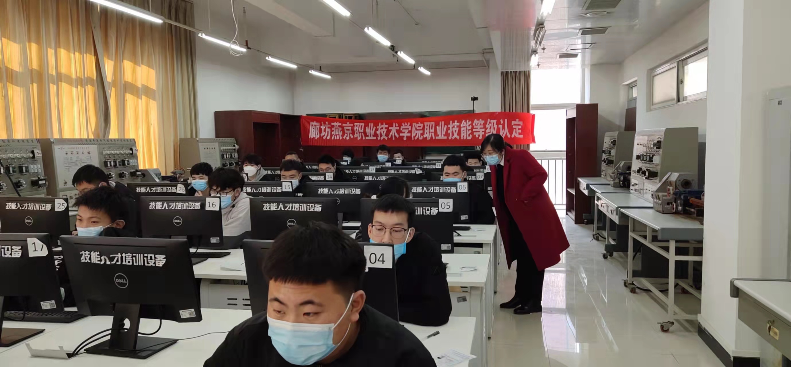 理论部分为上机考试,成绩由计算机自动阅卷评分,技能部分为现场操作。考试期间,机电系党总支书记高健、副主任李若冰陪同河北省人力资源和社会保障厅、廊坊市人力资源和社会保障局领导进行巡视督导,考试过程规范有序。