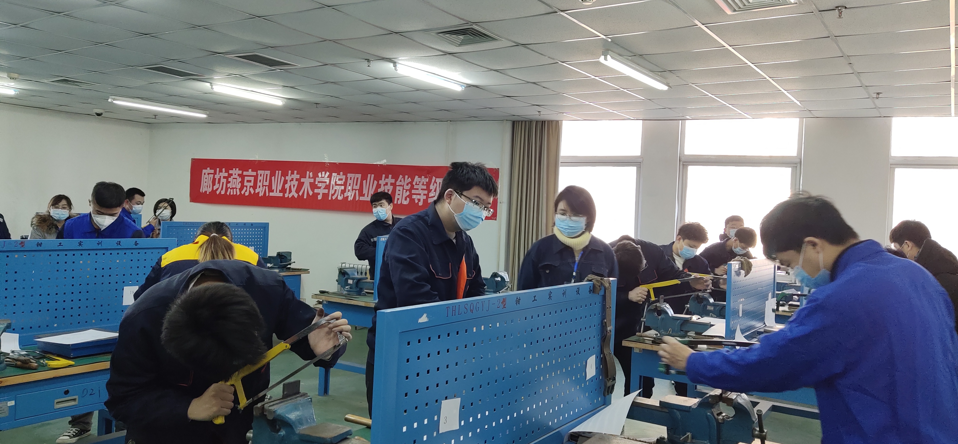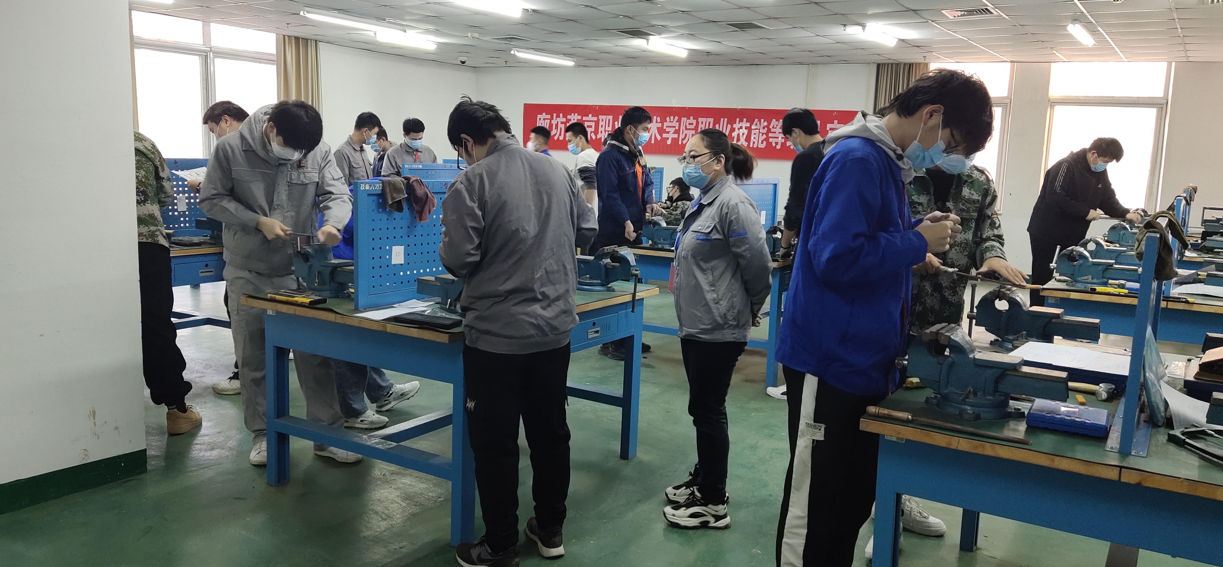 12月4日,机电工程系圆满完成了第二次职业技能等级认证工作。此次认证工作旨在完成大三毕业生的职业资格鉴定,同时提高学院教师的双师型素质。认证人数共91人,其中初级钳工23人、 中级钳工68人。