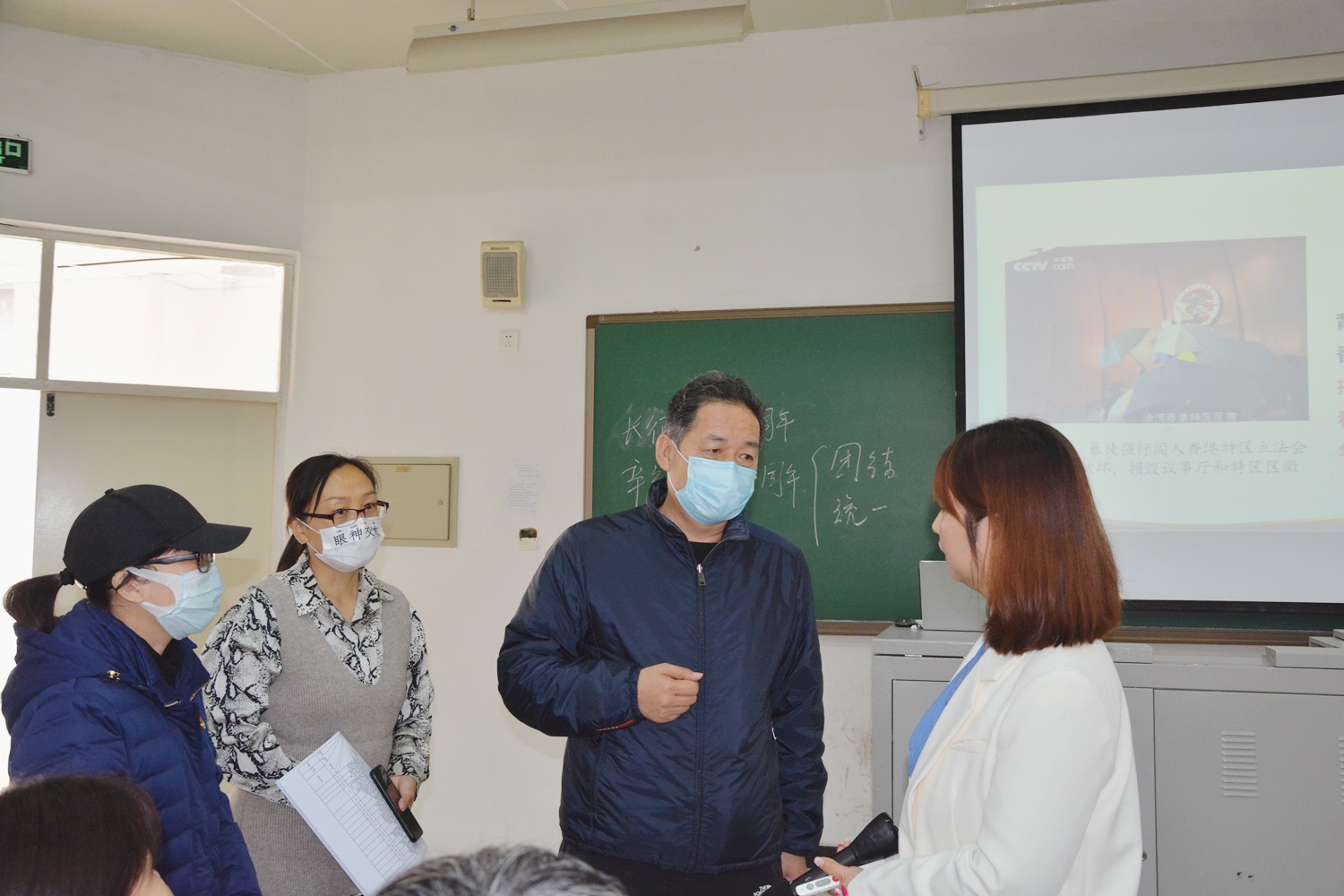 学院党委班子成员、各系党总支书记走进《形势与政策》课堂。马克思主义理论教学部李增艳老师正在进行《坚持“一国两制”,推进祖国统一》时政热点面对面专题教学。李老师以习近平总书记在纪念辛亥革命110周年大会上的讲话精神为指导,结合香港国安法和完善香港选举制度等,深入浅出地为同学们介绍“一国两制”的历史背景与基本内涵,以及在港、澳、台三地实施过程中取得的伟大成就及新时代面临的新机遇和新挑战。课堂上,通过“评时事、亮观点,我是小小评论员”环节,充分调动学生学习主动性,积极参与到课堂讨论当中,如抛出“当前解决我国台海统一问题的主要障碍何在”等问题,启发同学们各抒己见,激烈讨论,将课堂气氛推向高潮。