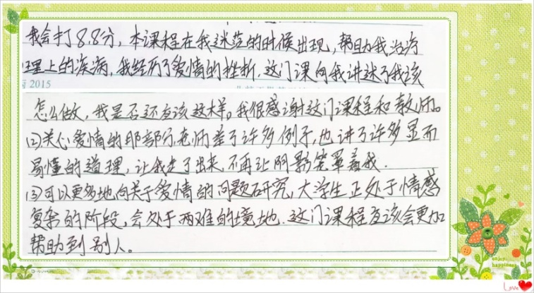 疫情期间,由于长期的封闭,不少学生出现了各种身心不适的症状。为了缓解广大学生的心理健康问题,马克思主义理论教学部的全体专兼职心理健康教师特意为学生开设了关于“疫情下大学生心理健康预防指南”的专题知识辅导,此次辅导针对大学生在疫情期间普遍存在的生理问题、学业问题、情绪问题、社交问题等产生的原因、表现以及相应的干预措施进行了详细的介绍。通过此次辅导,许多学生都表示受益良多。