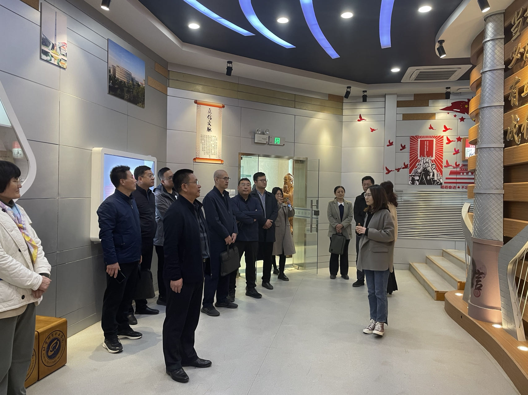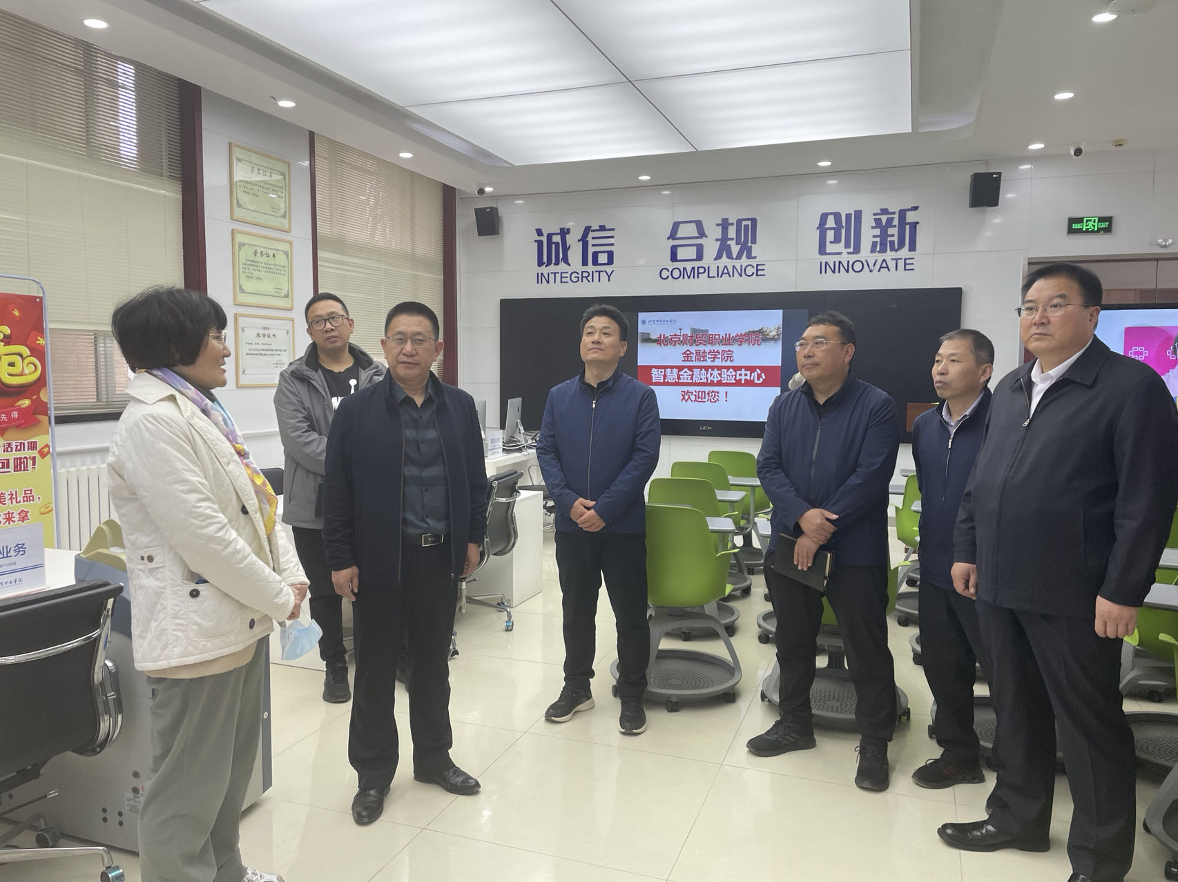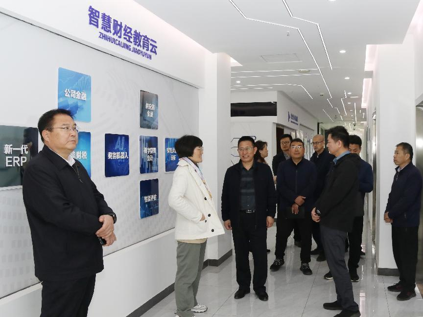 李宇红副校长详细介绍了北京财贸职业学院的建校历史和办学特色,带领金年会app手机版在线登录考察组重点参观了智慧金融体验中心、学业指导中心、会计文化学习体验中心、财务共享体验中心、智慧财税社会共享中心以及模拟企业运营中心等场所。