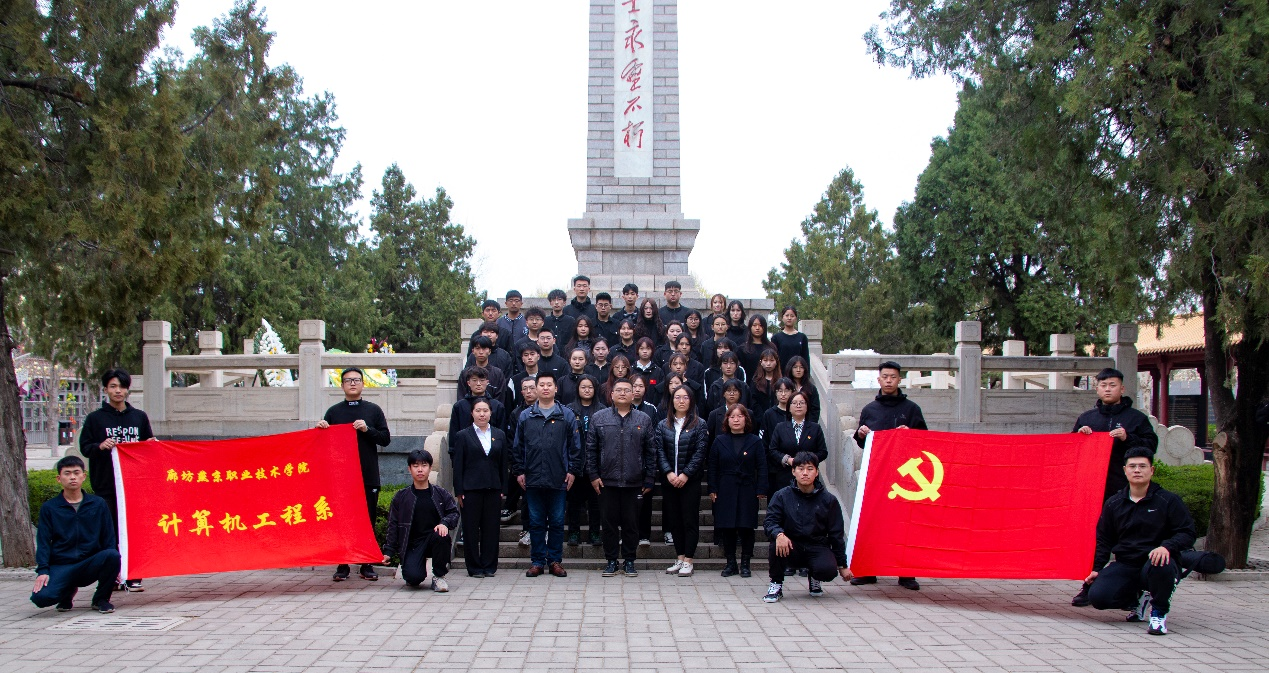 又是一年春草绿,梨花风起清明时。为加强师生队伍爱国主义和革命传统教育,铭记历史,缅怀先烈,积极利用并发挥红色教育效能,使党史教育成为弘扬历史革命传统、坚定理想信念的重要渠道,同时在爱国主义教育过程中使师生深化对党的二十大精神的学习贯彻,推动党的二十大精神入脑入心、落地生根。4月2日,计算机工程系党总支前往“中共党史教育基地”授牌单位之一——三河市烈士陵园开展“赓续红色血脉 传承奋斗精神”清明祭扫烈士墓主题党日活动。