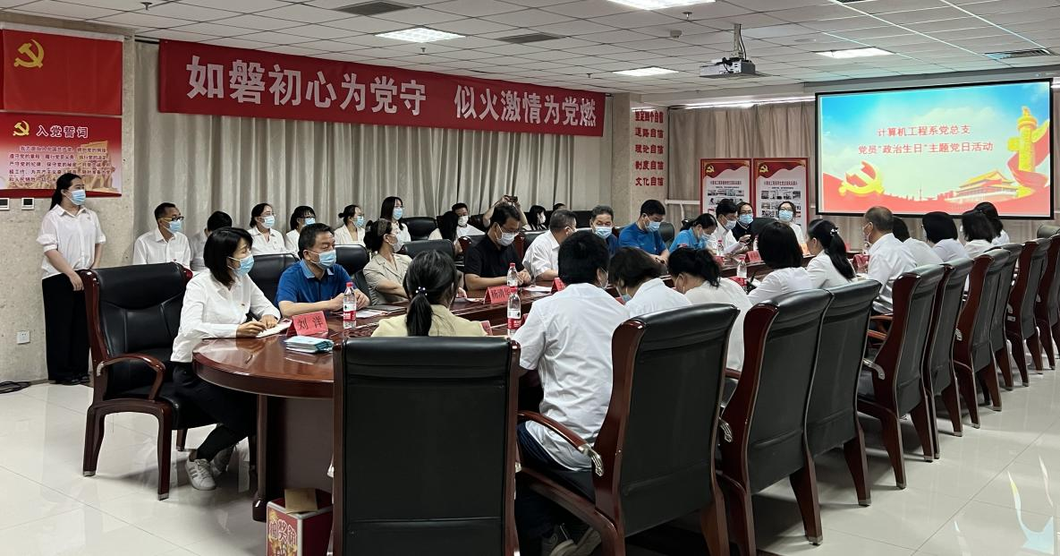 6月8日下午,计算机工程系党总支在图书馆1416室组织开展“如磐初心为党守 似火激情为党燃”党员“政治生日”主题党日活动,为6月份加入中国共产党的9名党员庆祝“政治生日”。活动邀请了学院党委书记薛树林同志,学院党委副书记、院长孙东辉同志,学院党委副书记刘增禄同志,党委委员、副院长林姿峰同志,党委委员、纪委书记王振波同志,党委委员、组宣处处长李宝东同志,纪委副书记杨清华同志,组宣处副处长王连臣同志,马学部副主任张淼同志莅临现场指导工作,各党总支(支部)代表到场观摩活动。计算机工程系全体党员参加活动,活动由系副主任艾华同志主持。