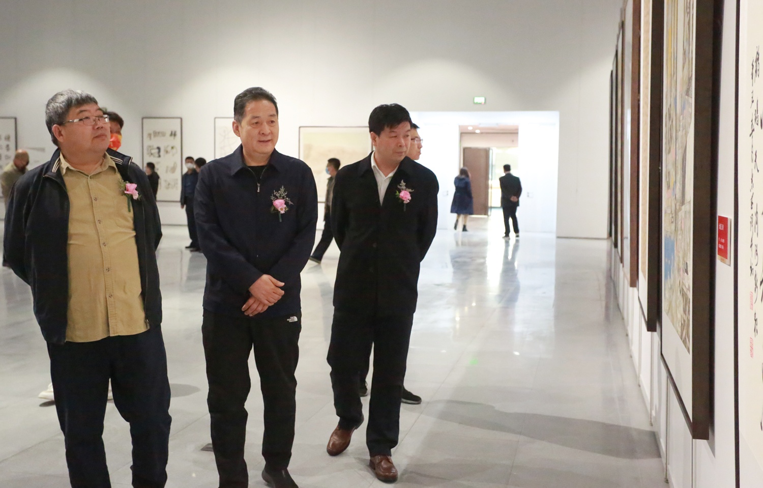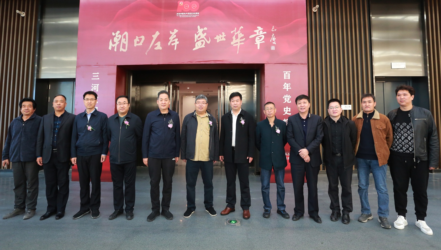 随后,文联主席张志庆发言。他指出,三河市围绕打造“文化强市”,实施文艺界百人培训计划并积极引进艺术人才,使三河艺术人才涌现,三河成为艺术家聚居地,成为整个廊坊书画界不可或缺的创作力量。本次展出以书画形式记录三河市的沧海桑田、发展变迁和三河市人民的昂扬斗志、精神面貌,用三河市发展建设的盛世华章向中国共产党建党百年献礼。