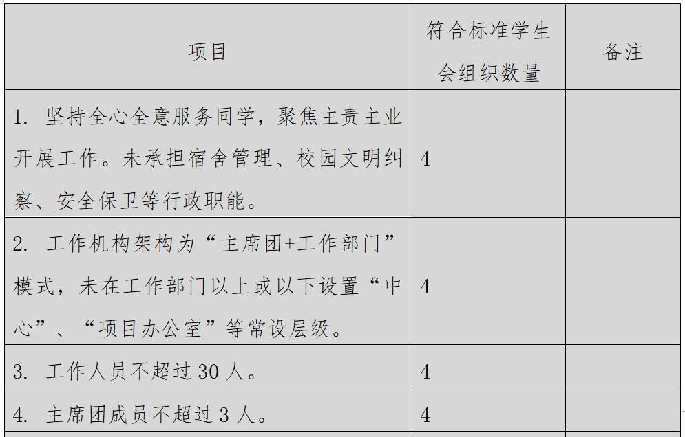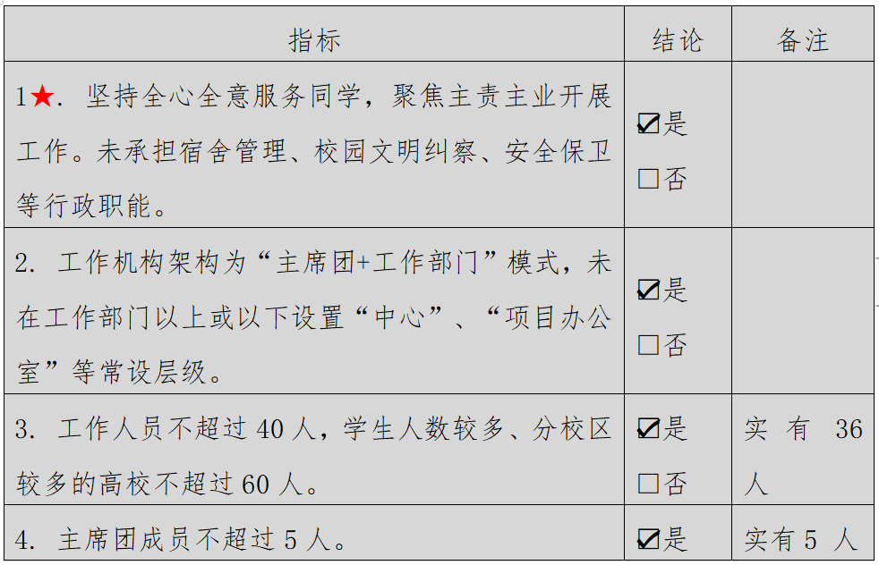 (一)校级学生会组织改革自评表