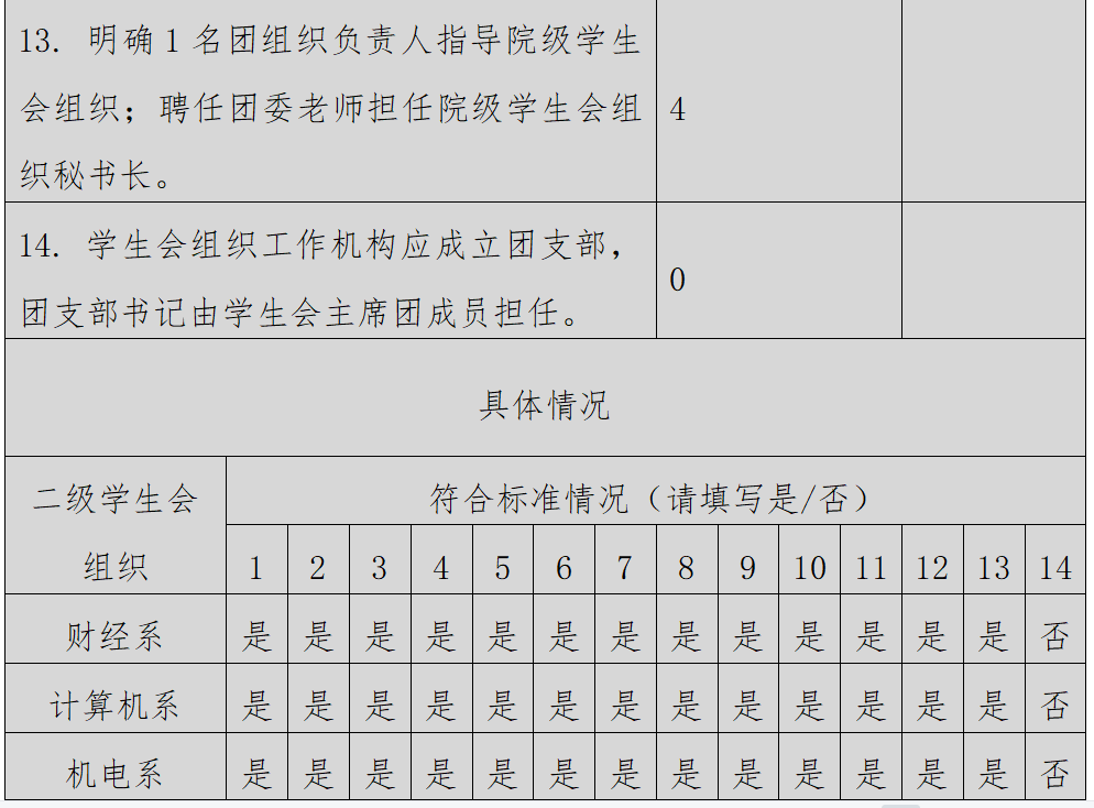 (二)二级学生会组织(含二级院系、书院、分校区等学生会、研究生会)改革自评表
