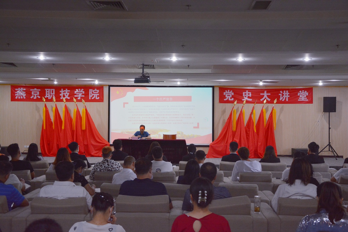 为进一步促进党史学习教育进课堂,根据学院党史学习教育工作安排,9月8日上午,党委书记薛树林同志为学生讲授党史学习教育开学第一课,各系学生代表,学院中层领导干部,党总支、党支部委员,思政教师等100余人聆听了讲课。