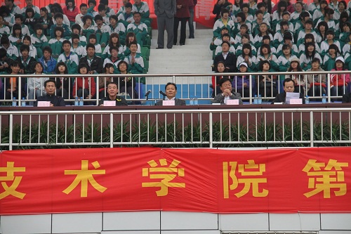 首届运动会由教务处、公共教学部主办,各职能处室、各系部及教辅单位鼎力协办。共设男女100米、200米、400米、800米、4×100米接力、1500米、跳高、跳远、铅球以及女子3000米、4×400米接力、男子3000米长跑等11个田径比赛项目;托球跑、定点投篮、定点射门、保龄球、珠行万里、无敌风火轮、大脚板、心心相印、拔河、集体跳绳等10个趣味项目,共20支师生代表队、370余名师生参加。他们将在为期两天的激烈的角逐中本着友谊第一、比赛第二的精神,全力争先、顽强拼搏,充分展现“更高、更快、更强”的体育精神,凭借出色的发挥和过硬的实力将优异成绩载入学院史册。