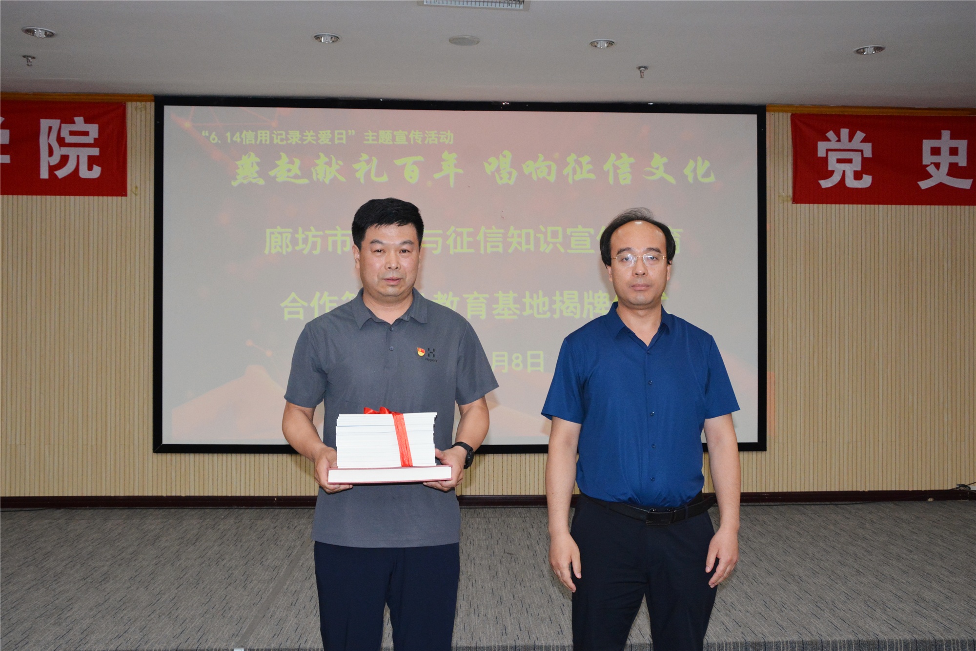 三河市人民政府金融信用办公室向金年会app手机版在线登录捐赠诚信教育书籍