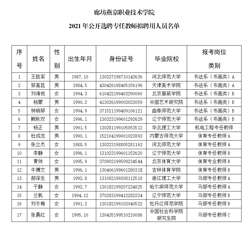 金年会app手机版在线登录2021年公开选聘专任教师拟聘用人员名单
