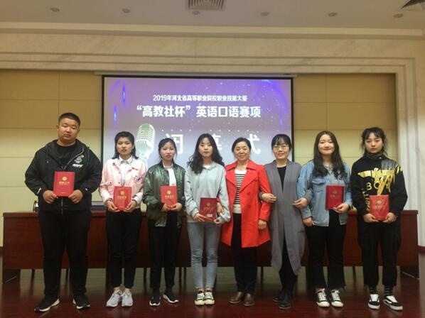 由省教育厅、省财政厅、省人力资源和社会保障厅以及省工业和信息化厅联合举办的2019年河北省高等职业院校职业技能大赛“高教社杯”英语口语赛项于4月20日至4月21日在河北对外经贸职业学院举行。金年会app手机版在线登录公共教学部英语教研室主任张登芝教授带队,青年教师王校英作为指导教师,非英语专业组靳圣宇,刘海旭,王鑫,英语专业组徐伟伟,张文思,武宇静,共计6名同学同赴秦皇岛,参加本次比赛并取得了喜人佳绩。