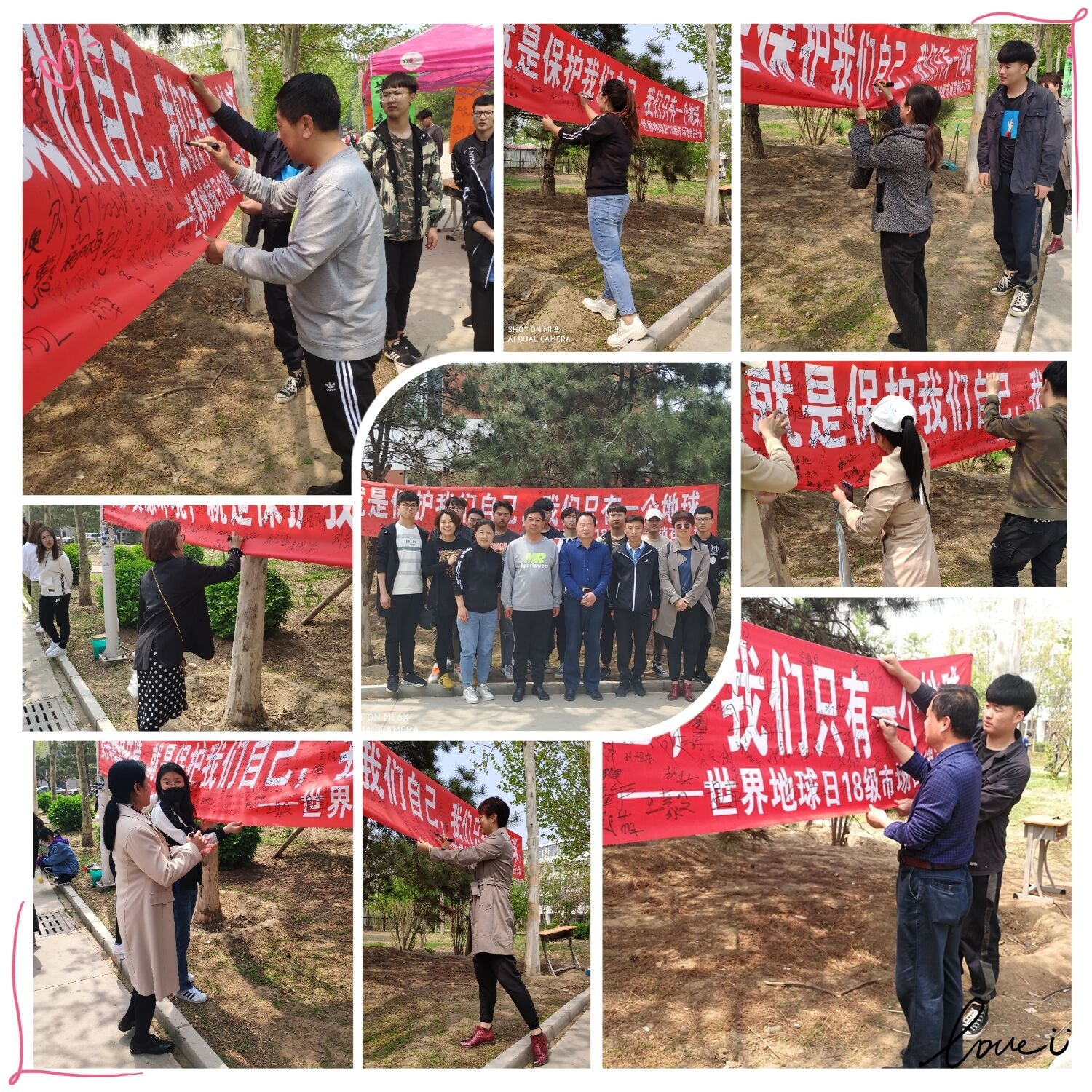 为了响应院领导提出的打造注重职业核心能力的课堂文化活动,提高当代大学生的主人翁责任感,让每位同学能注重保护环境,意识到珍惜资源的重要性,4月22地球日,财经系2018级市场营销专业学生在老师的带领下,组织了“爱护地球,保护家园”的地球日主题宣传活动。