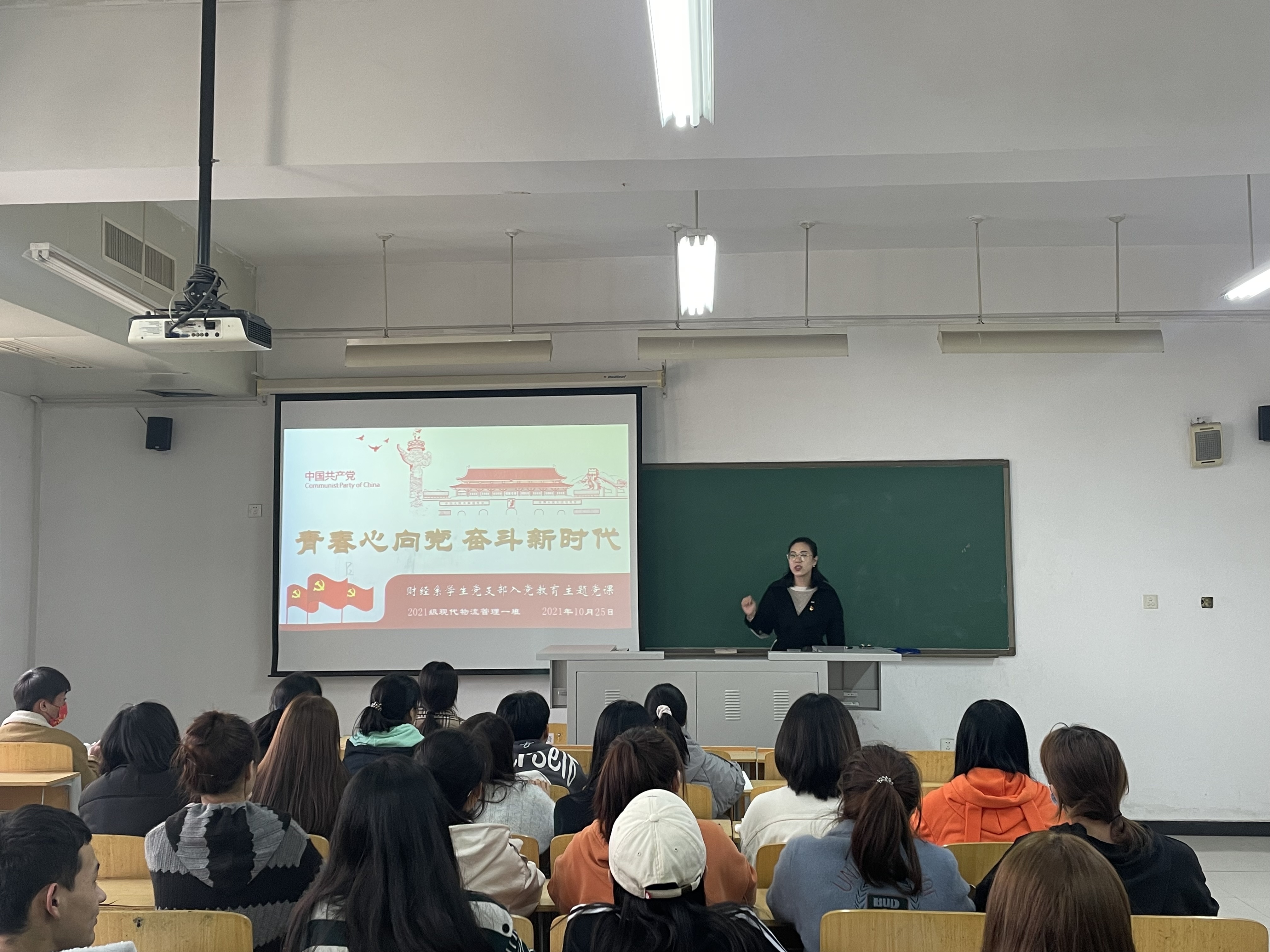 为提高学生的政治觉悟和思想素质,帮助2021级新生提升对党的认识,树立党性意识,端正入党动机,了解入党流程,同时也为了帮助新生尽快融入大学生活、适应大学生角色的转变,财经系学生党支部近期组织开展了“青春心向党,奋斗新时代”主题入党启蒙宣讲活动。此次活动由财经系学生党支部的辅导员老师担纲主讲。